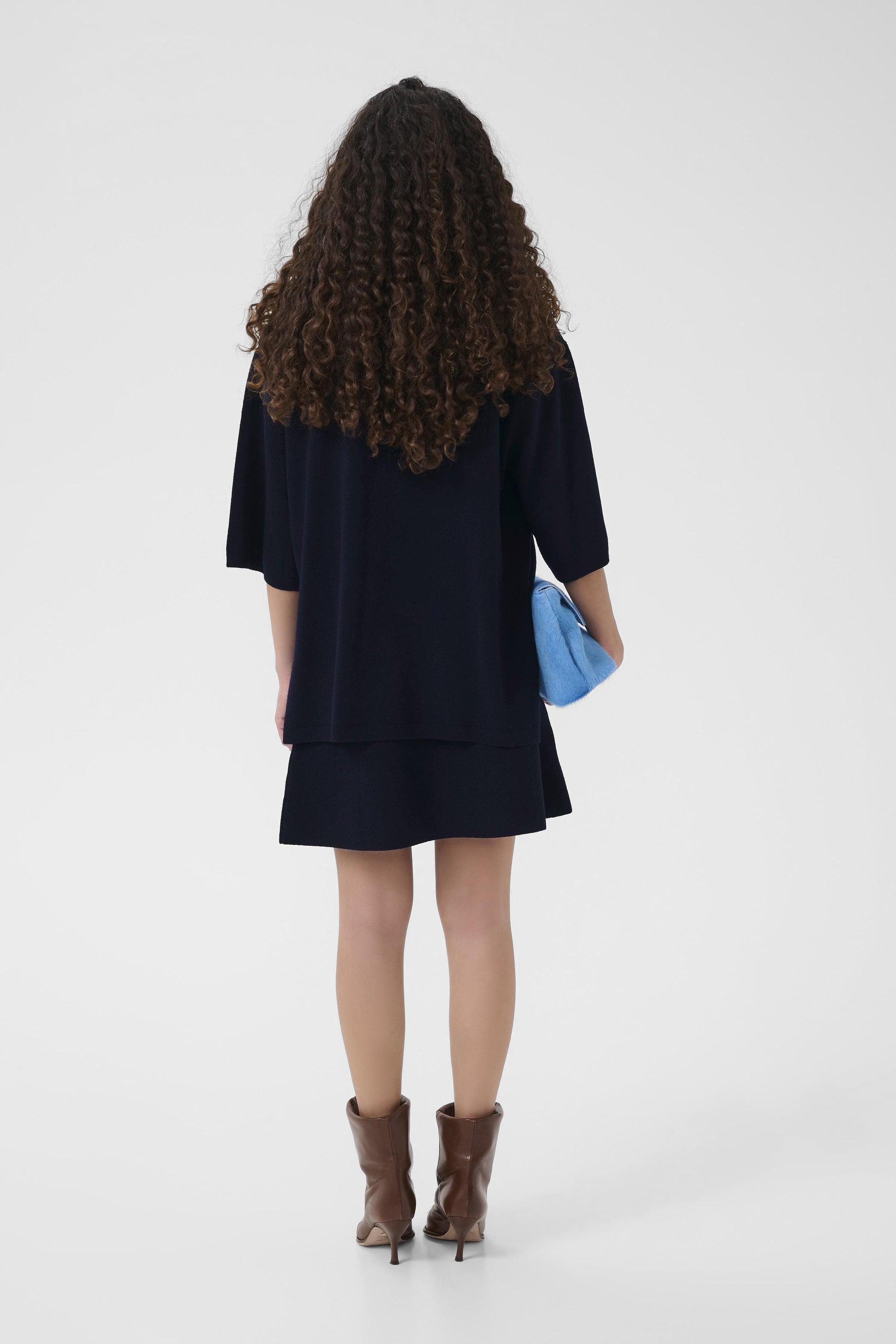 wunderschöner dunkelblauer, kurzer, leicht ausgestellter Feinstrickrock von Gestuz