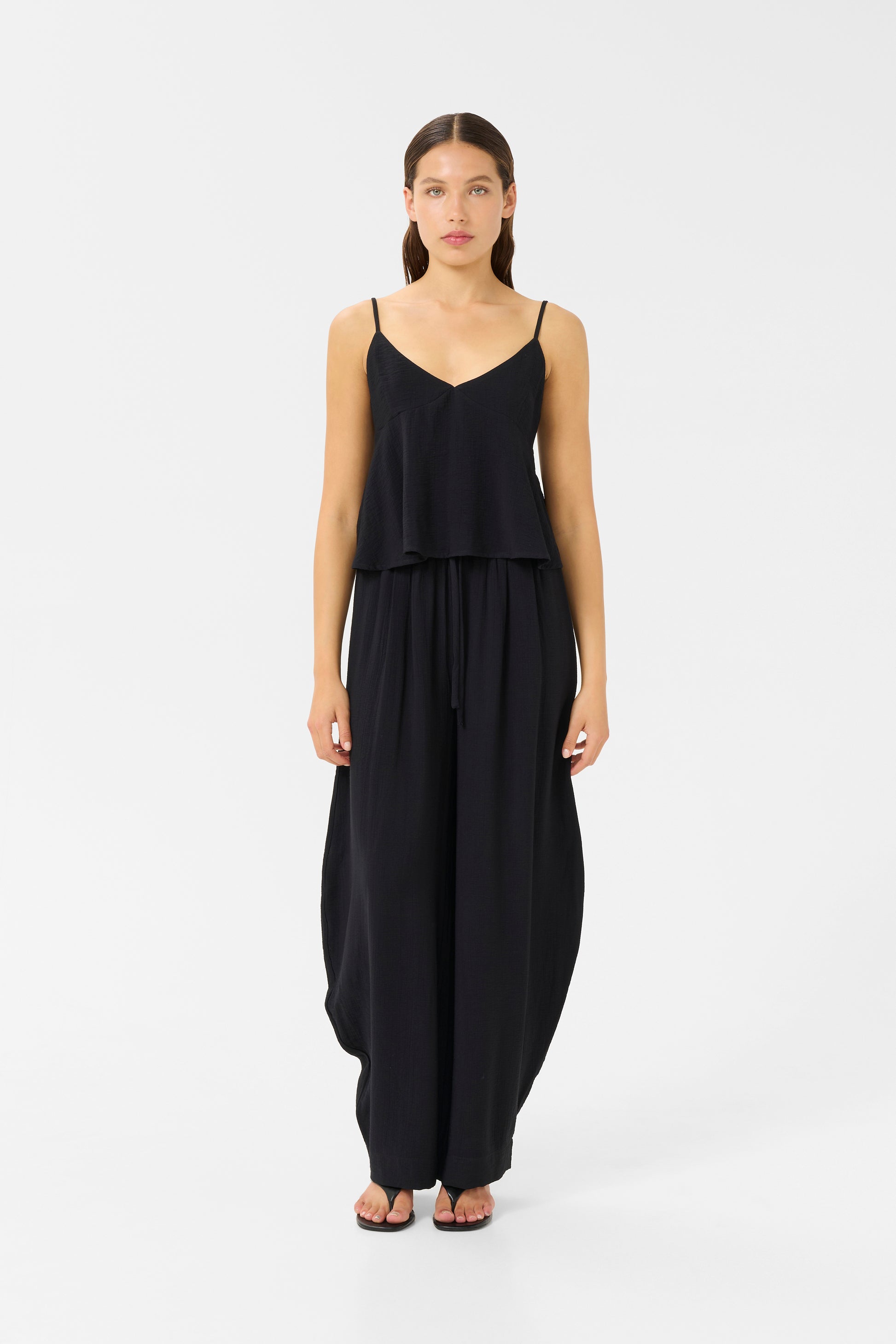 Ärmelloses Top von Gestuz mit ausgestelltem Saum und Spaghettiträgern. V-Ausschnitt und lockere Passform für eine luftige Silhouette. Aus leicht strukturiertem Material für den Alltag gefertigt. Das Model ist 176 cm groß und trägt Größe S/36.