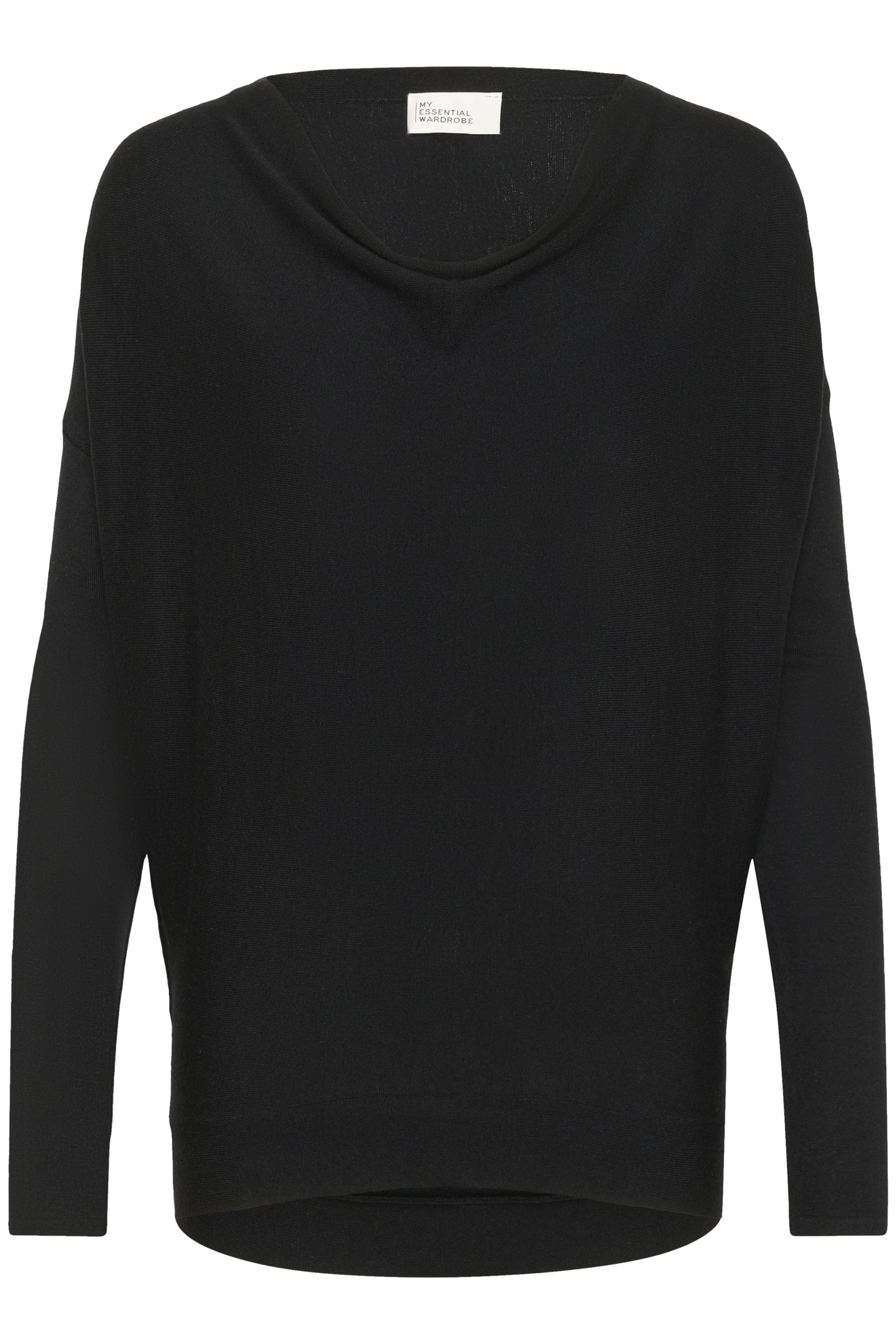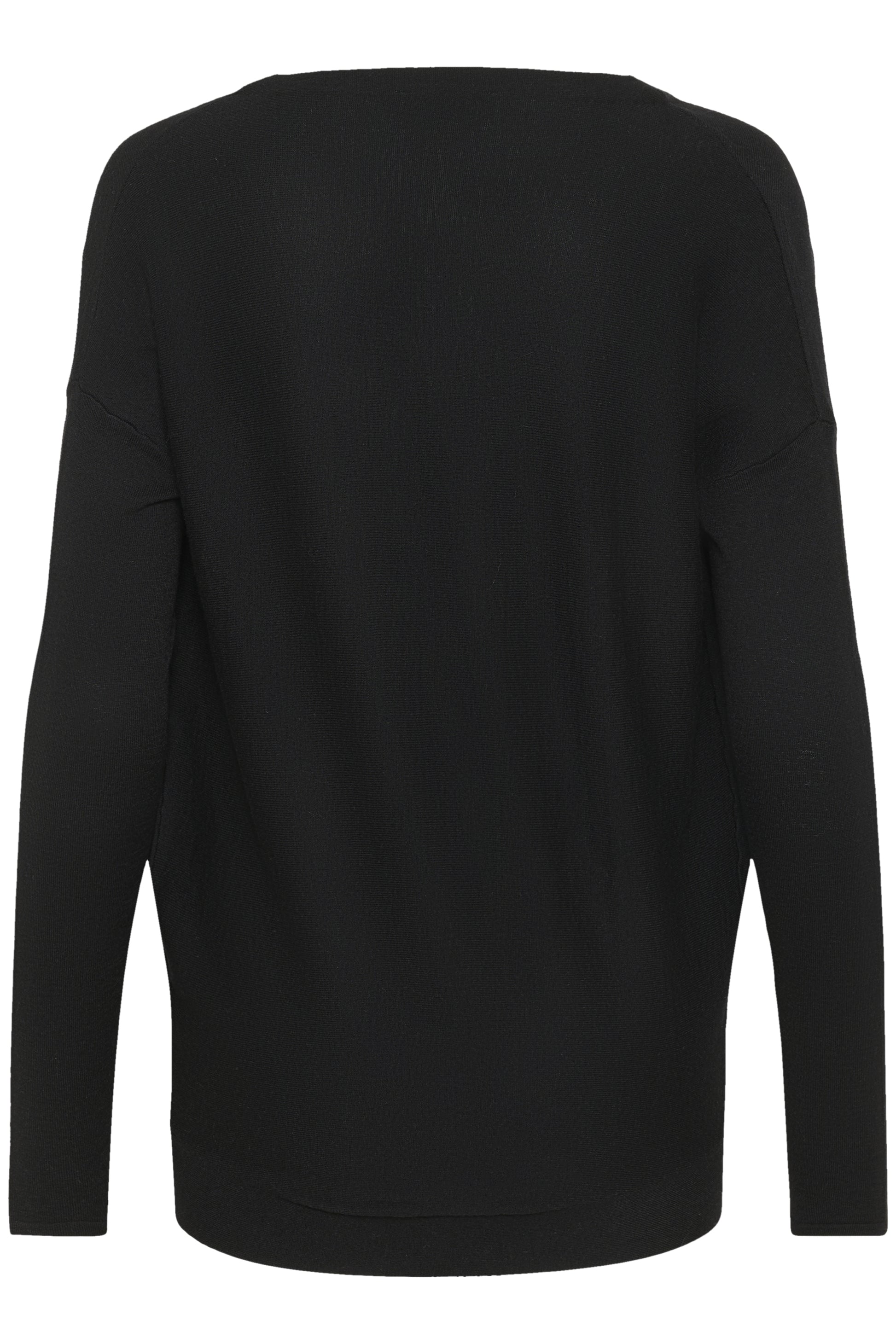 Dieses schwarze Stricktop bietet einen breiten Bootsausschnitt, lockere Fledermausärmel und eine gerade Silhouette. Der figurbetonte Saum gibt modernen Look.