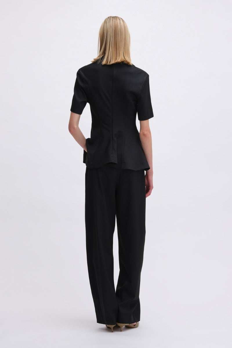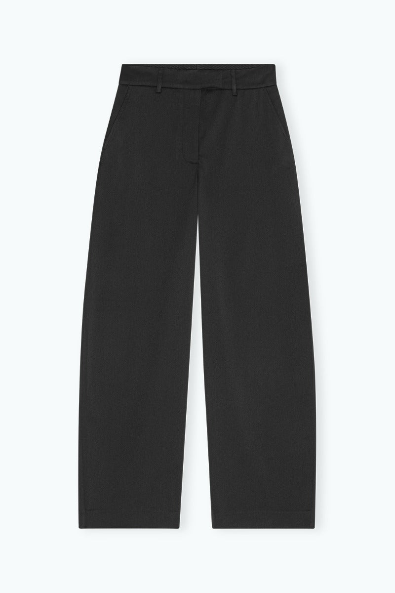 Die schwarze Cocoon Anzughose von Remain hat eine weite Silhouette mit mittelhoher Taille. Gürtelschlaufen, ein verdeckter Frontverschluss, Seitennahttaschen und Leistentaschen hinten sorgen für einen klaren, maßgeschneiderten Look.