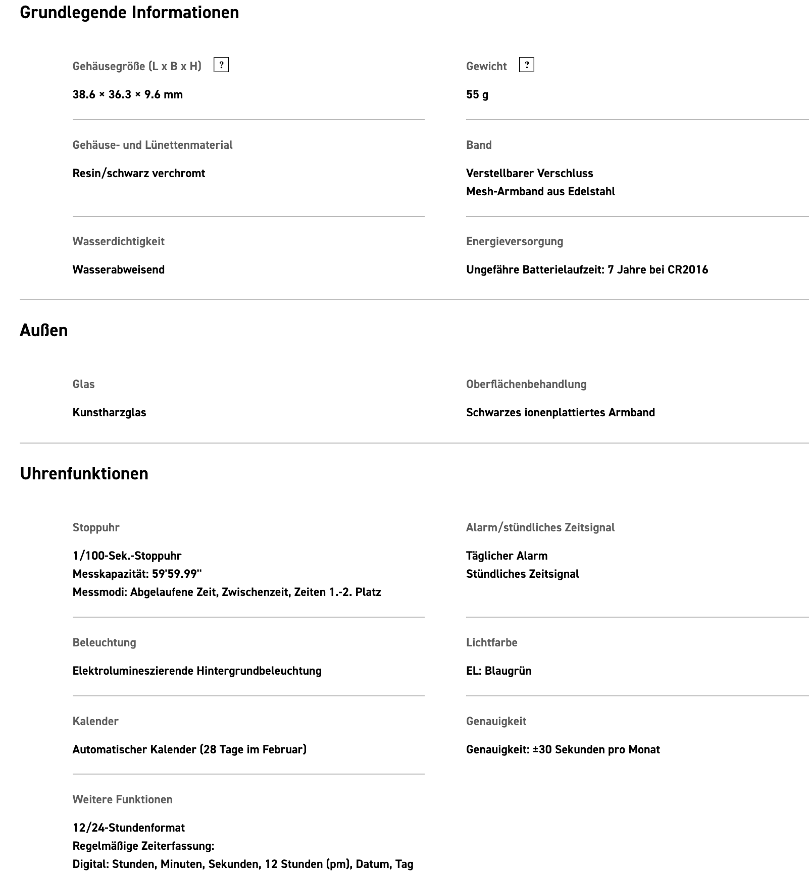 Diese Uhr ist mehr als nur ein modisches Statement. Sie bietet dir praktische Funktionen wie Stoppuhr und Alarm sowie Wasserdichtigkeit für den täglichen Gebrauch, damit du dir auch an regnerischen Tagen keine Sorgen machen musst.