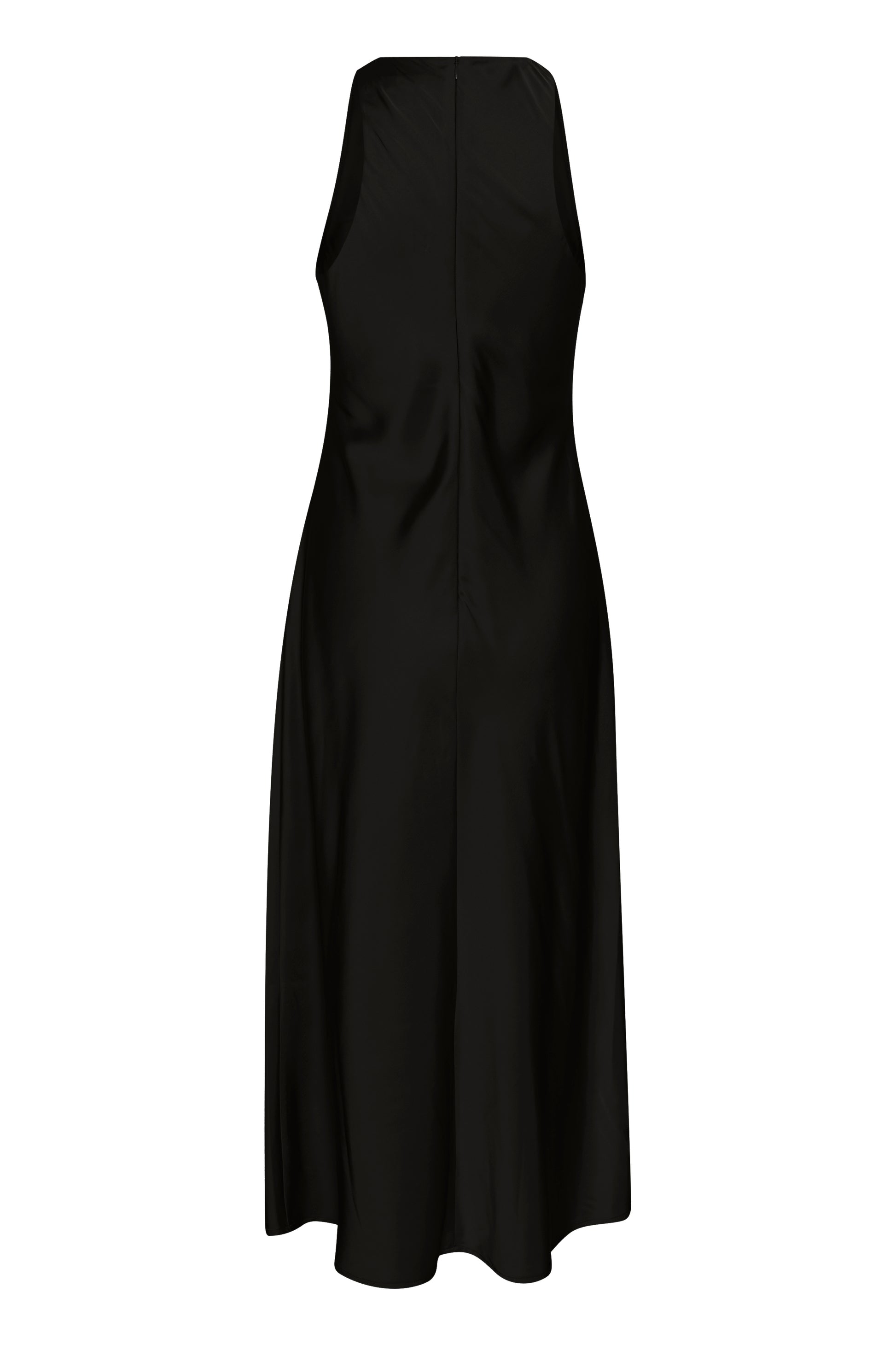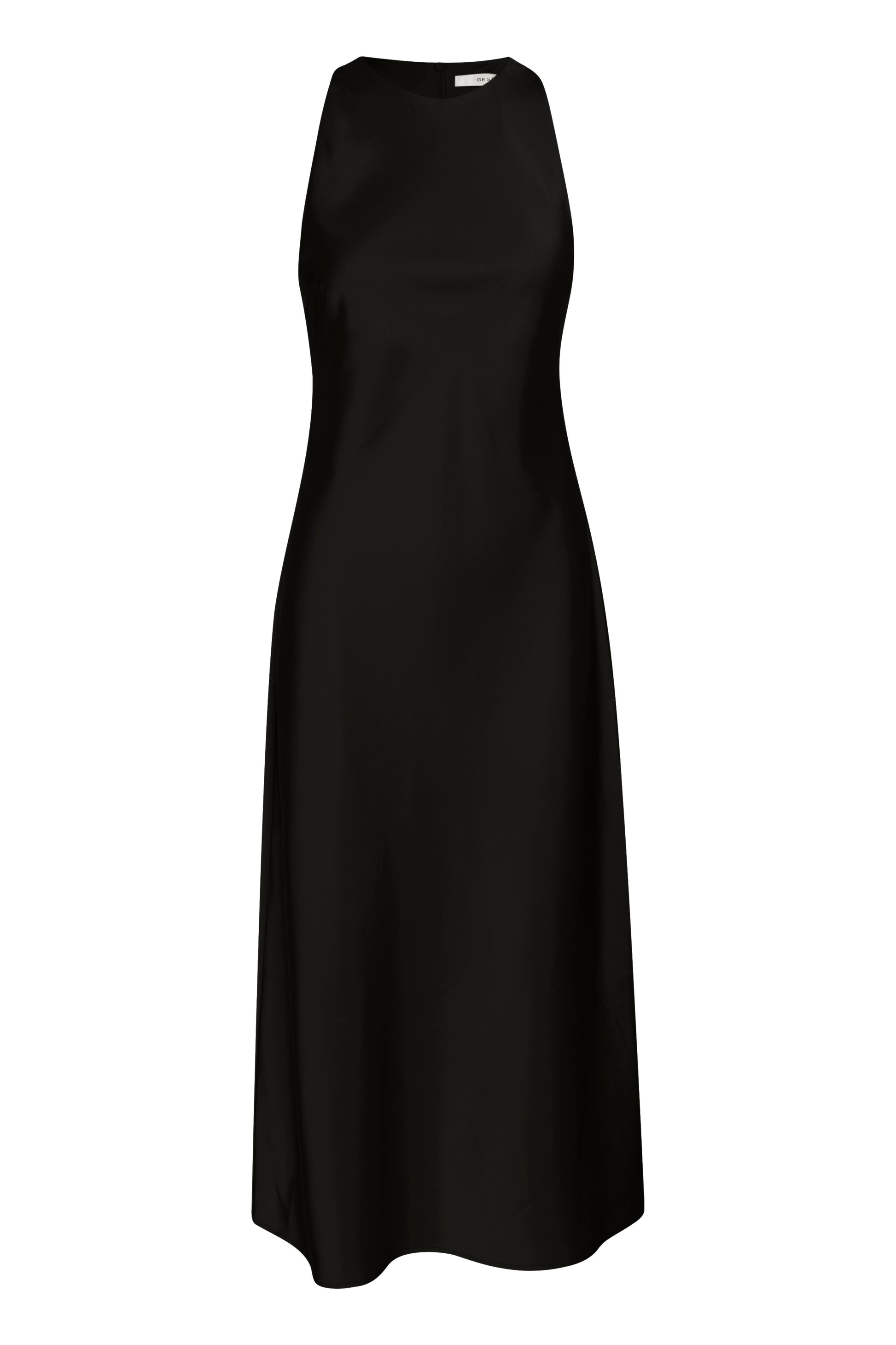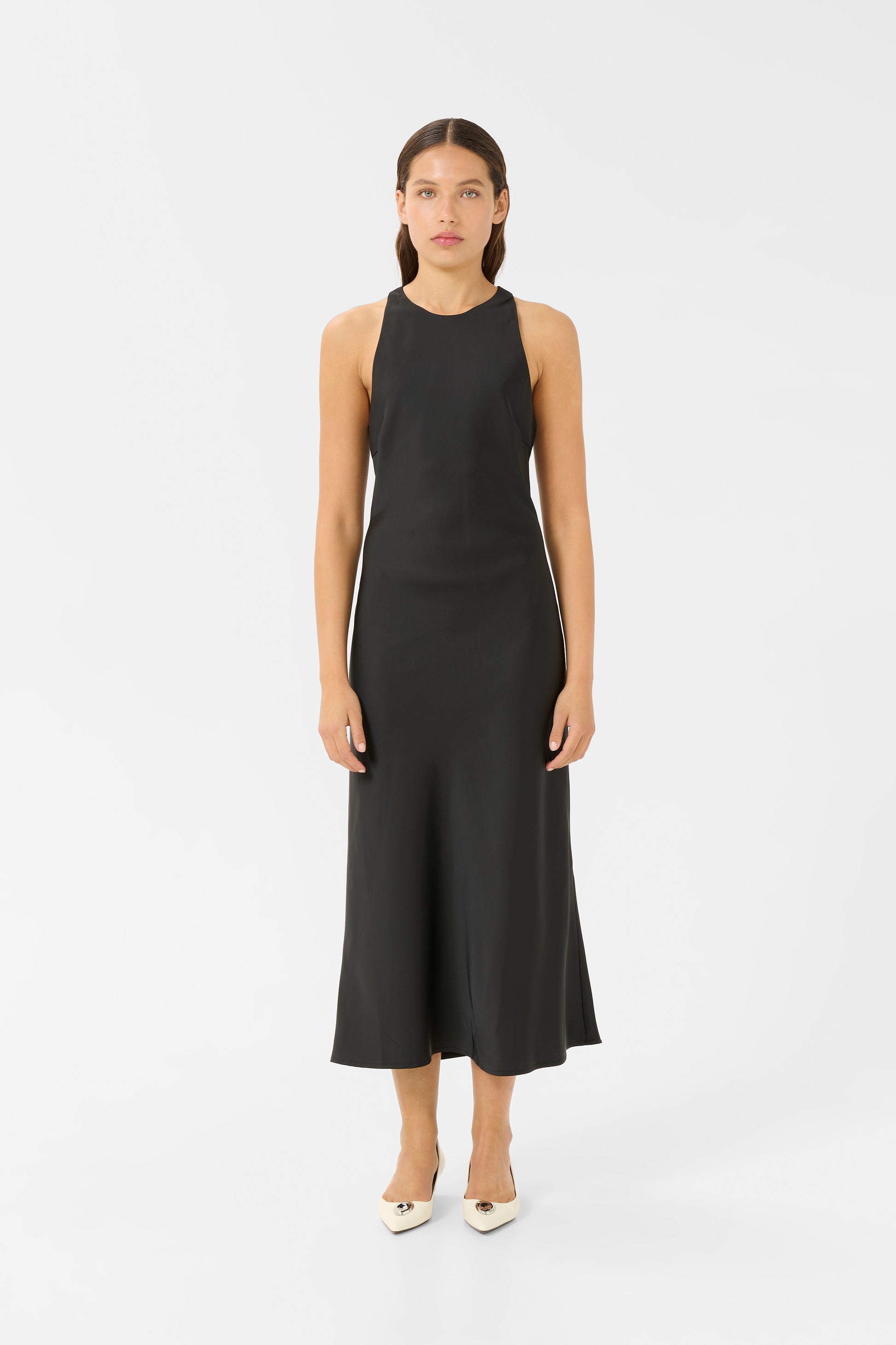 Elegantes A-Linien-Kleid mit hohem Neckholder und schmaler Silhouette. Figurbetontes Oberteil, ausgestellter Saum und Reißverschluss hinten. Angenehm zu tragen mit fließender Passform und zeitlosem Look. Das Model ist 176 cm groß und trägt Größe S/36.