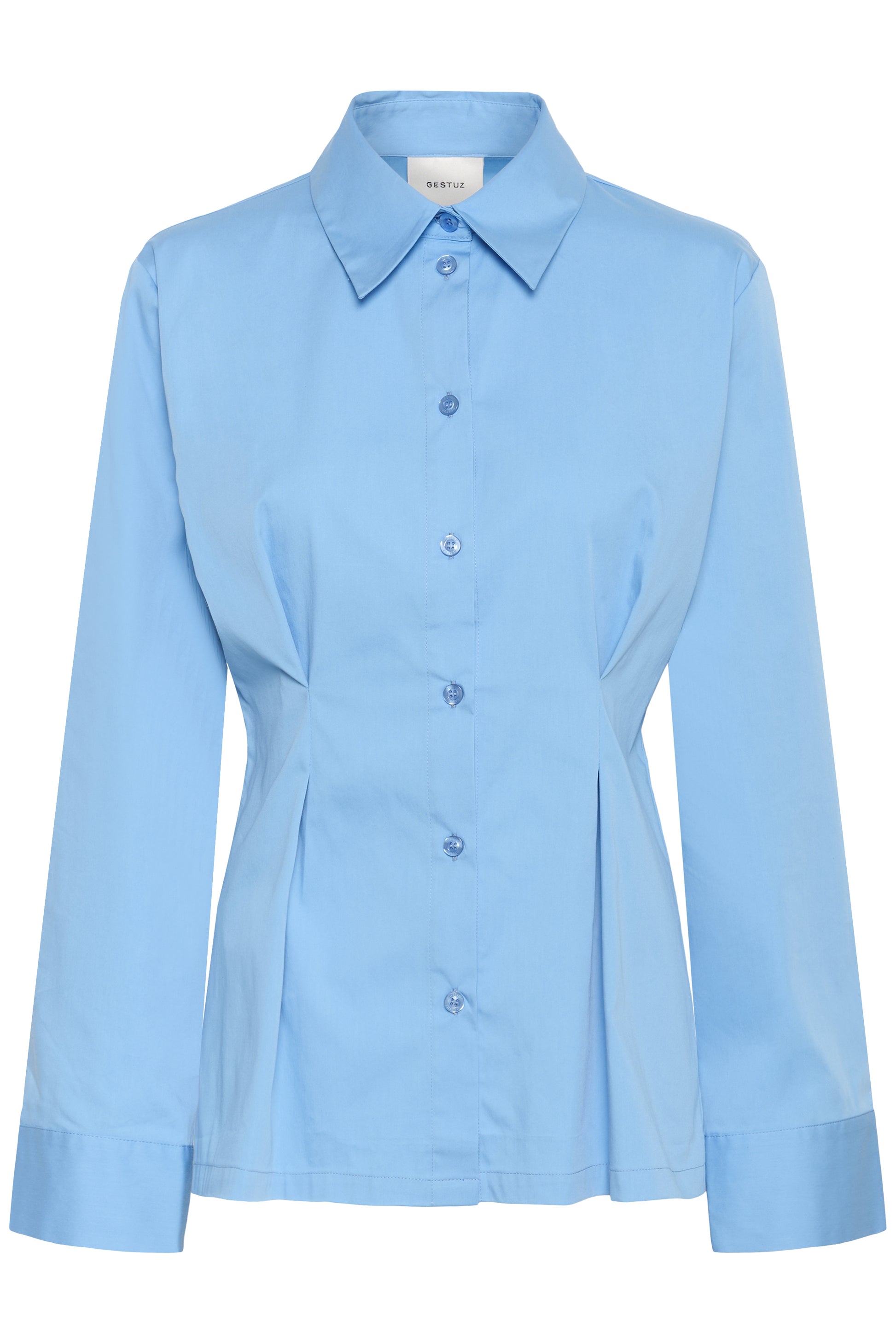 Azure Blaue Taillierte Bluse von Gestuz, Must Have Basic mit dem gewissen extra! Vorne und Hinten abgenäht