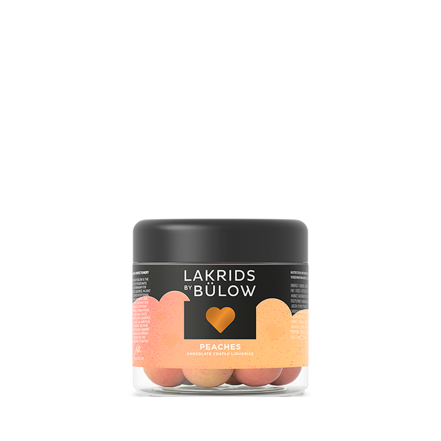 Lakritz überzogen mit Pfirsiche und weisser Schokolade: Zutaten: 52% weisse Schokolade (Kakao: 26% mindestens)(EU)(Zucker, Kakaobutter, Vollmilchpulver, Emulgatoren (Sojalecithin, Lecithin), natürliches Aroma), Zucker, Reismehl, Invertzuckersirup, Melasse, Glukosesirup, 1% Pfirsiche (EU)(gefriergetrocknet), Passionsfrucht (gefriergetrocknet), 1% Süssholzextrakt (nicht-EU), Überzugsmitteln (Gummiarabikum, Karnaubawachs, Schellack), Rapsöl, Salz, Ammoniumchlorid, Farbstoffe (Calciumcarbonat, Beta-Carotin, Rote Bete), natürliche Aromen, Stabilisator: Gummiarabikum. Kakao: 26% mindestens. Glutenfrei. Vor Hitze und Feuchtigkeit schützen.