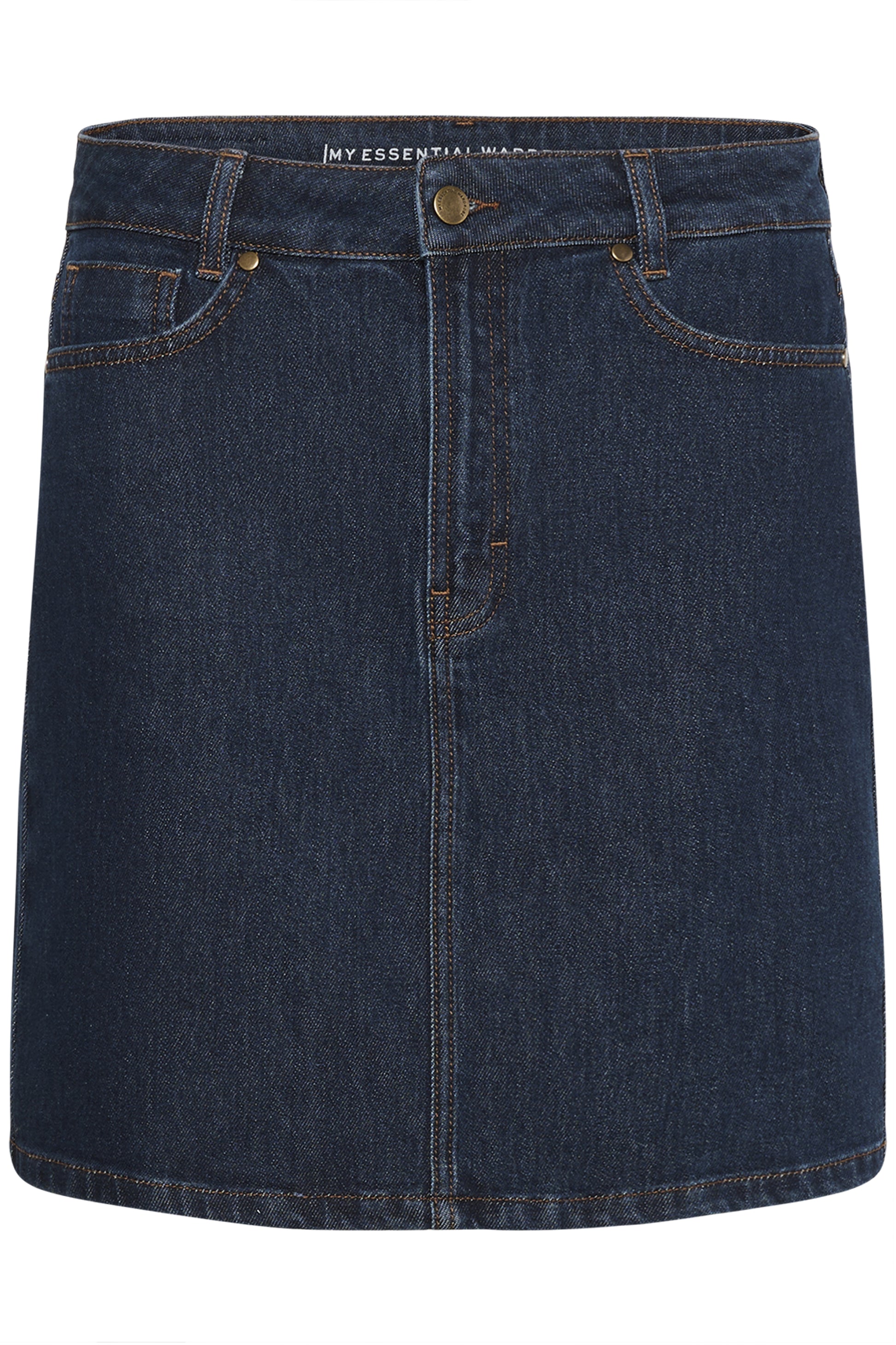 Der Jeansrock überzeugt durch eine gerade Silhouette, mittlere Schenkellänge, Five-Pocket-Design und Bund mit Gürtelschlaufen und Knopf.