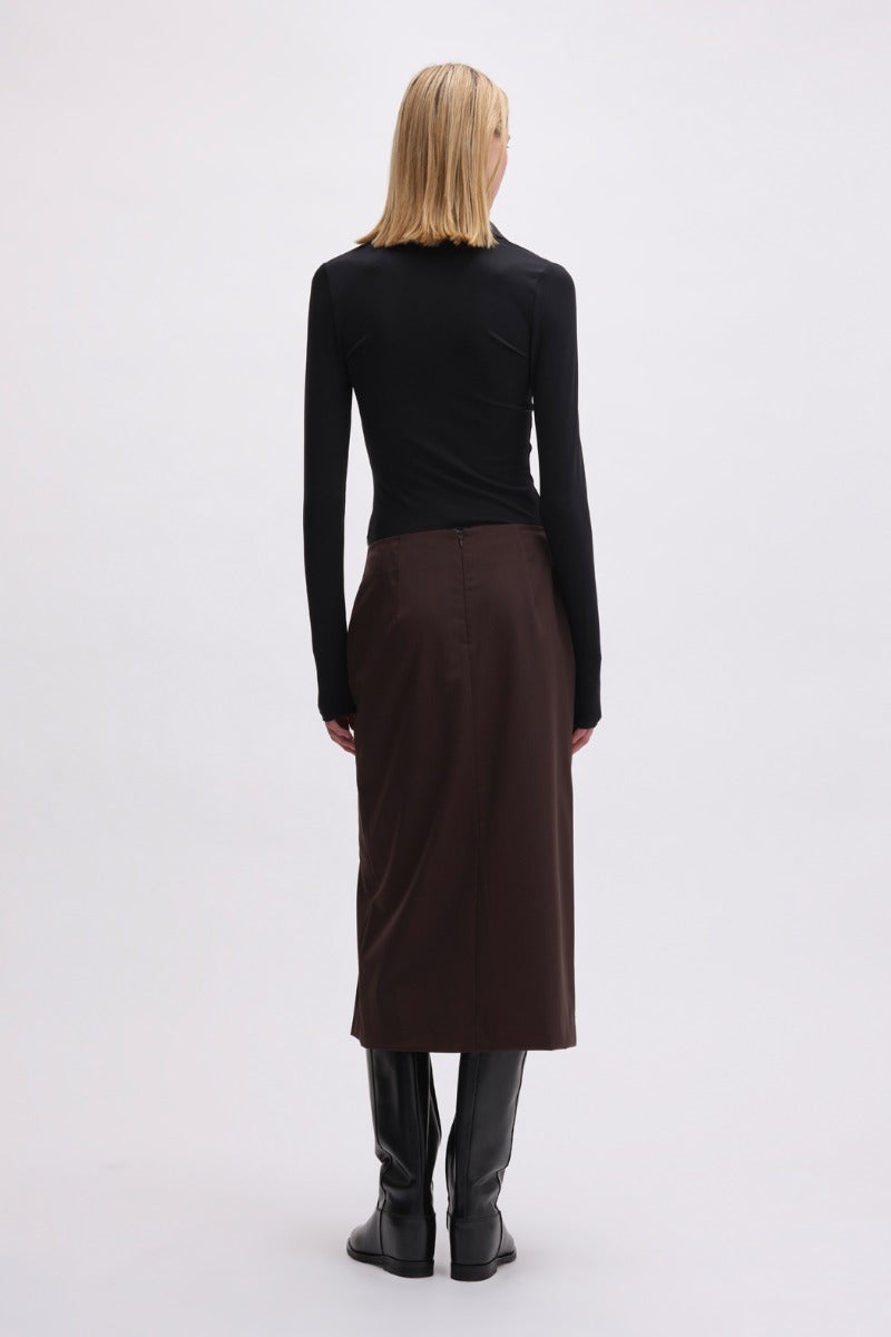 Das Jersey-Poloshirt von Remain in Schwarz ist aus glattem Stretch-Jersey gefertigt und besticht durch eine taillierte Silhouette mit langen Ärmeln. Der spitze Kragen und der offene V-Ausschnitt sorgen für einen eleganten und minimalistischen Look. Der klare Saum und die schlichten Nähte unterstreichen das edle Finish.