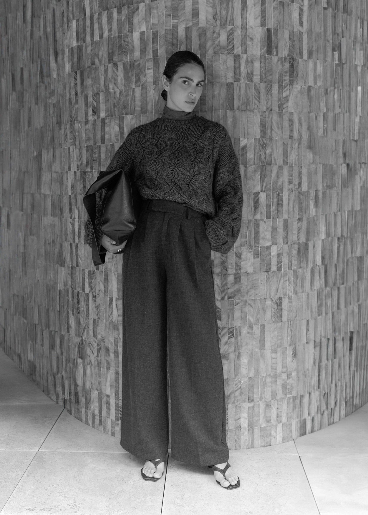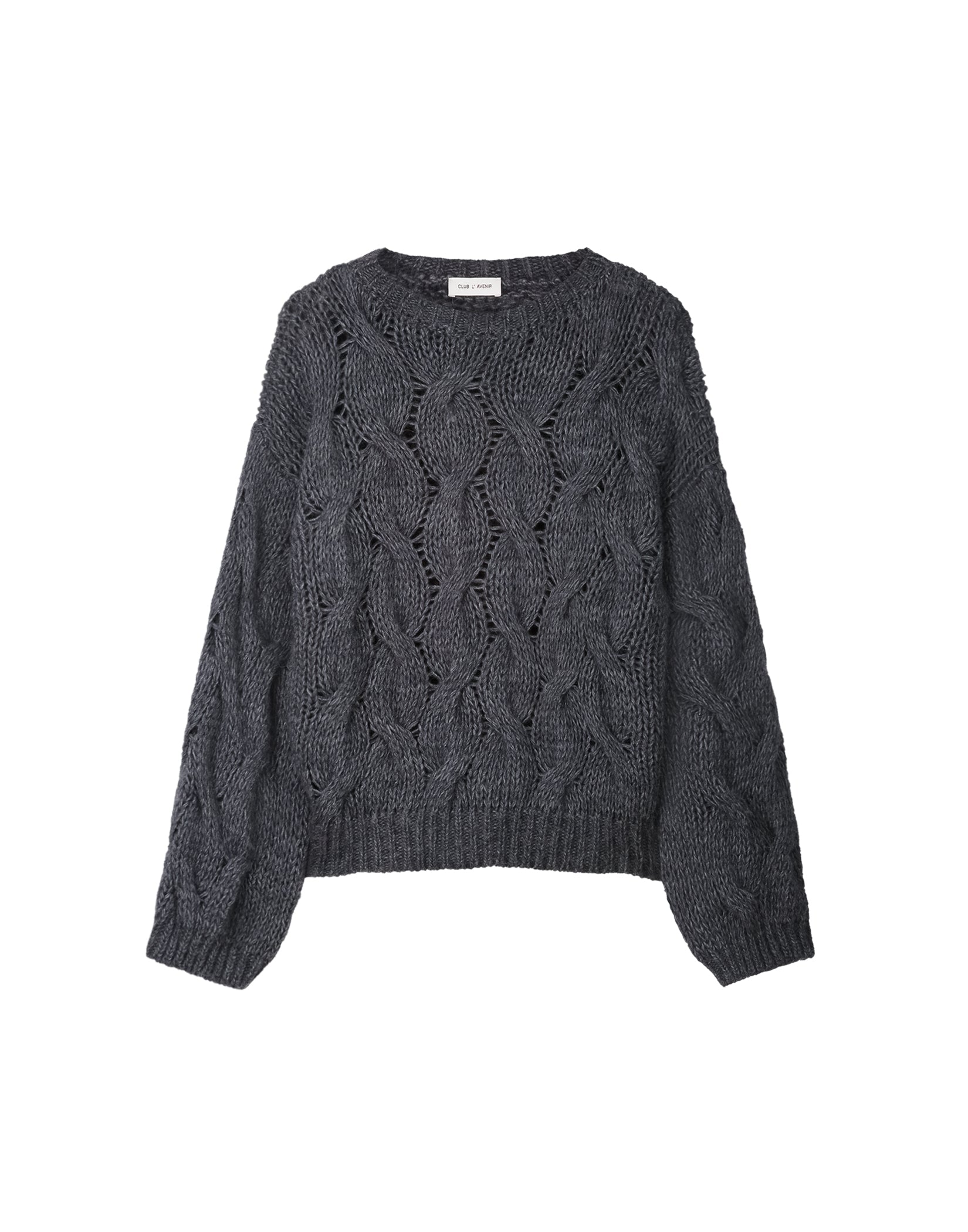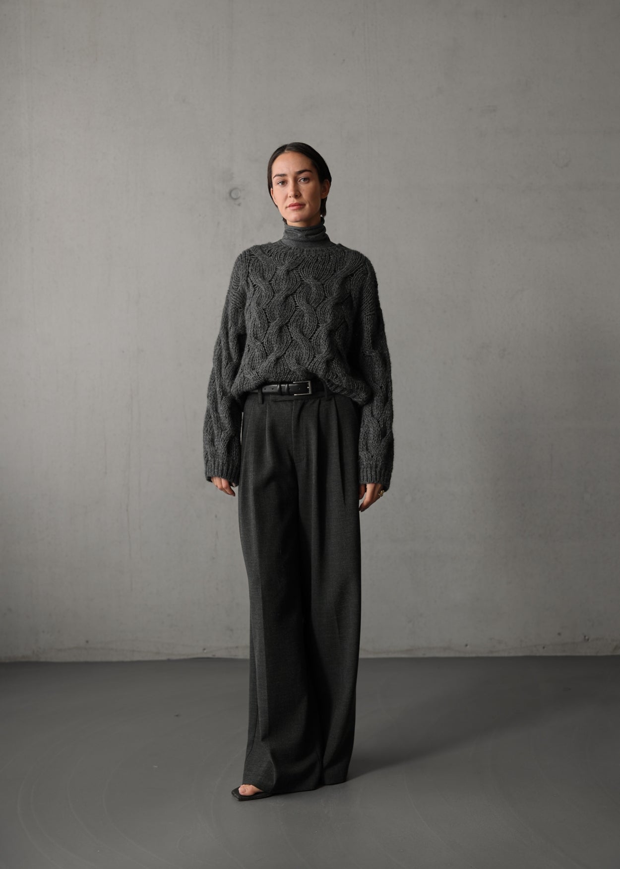 wunderschöner Strickpullover von Club L`Avenir in Dark Grey Melee meliert mit Groben Zopfstrickmuster