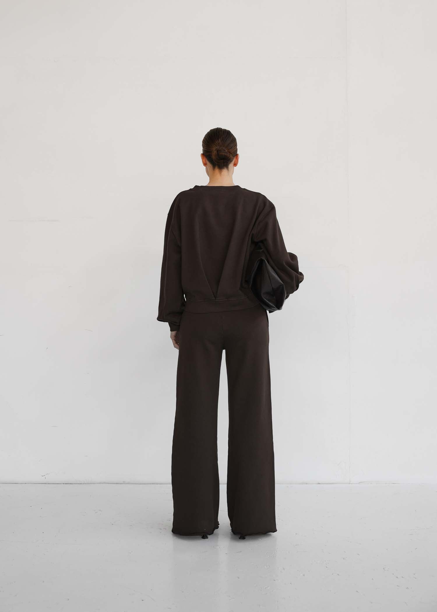 Baumwollhose von Club L`Avenir zum Überziehen mit hoher Taille und weitem Bein. Sie hat einen elastischen Bund. Das Model ist 176 cm groß und trägt Größe S.