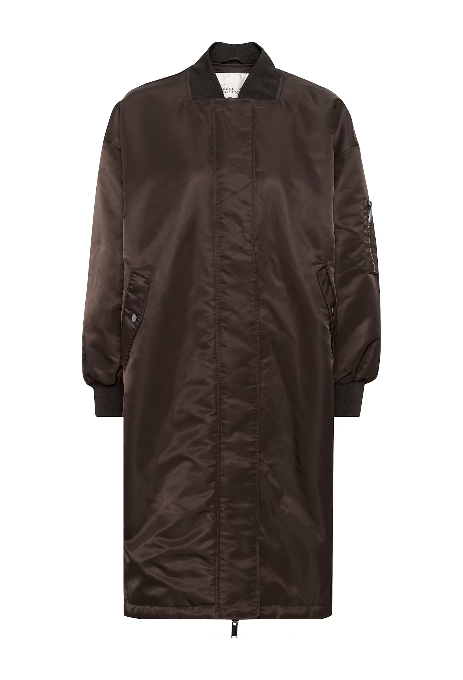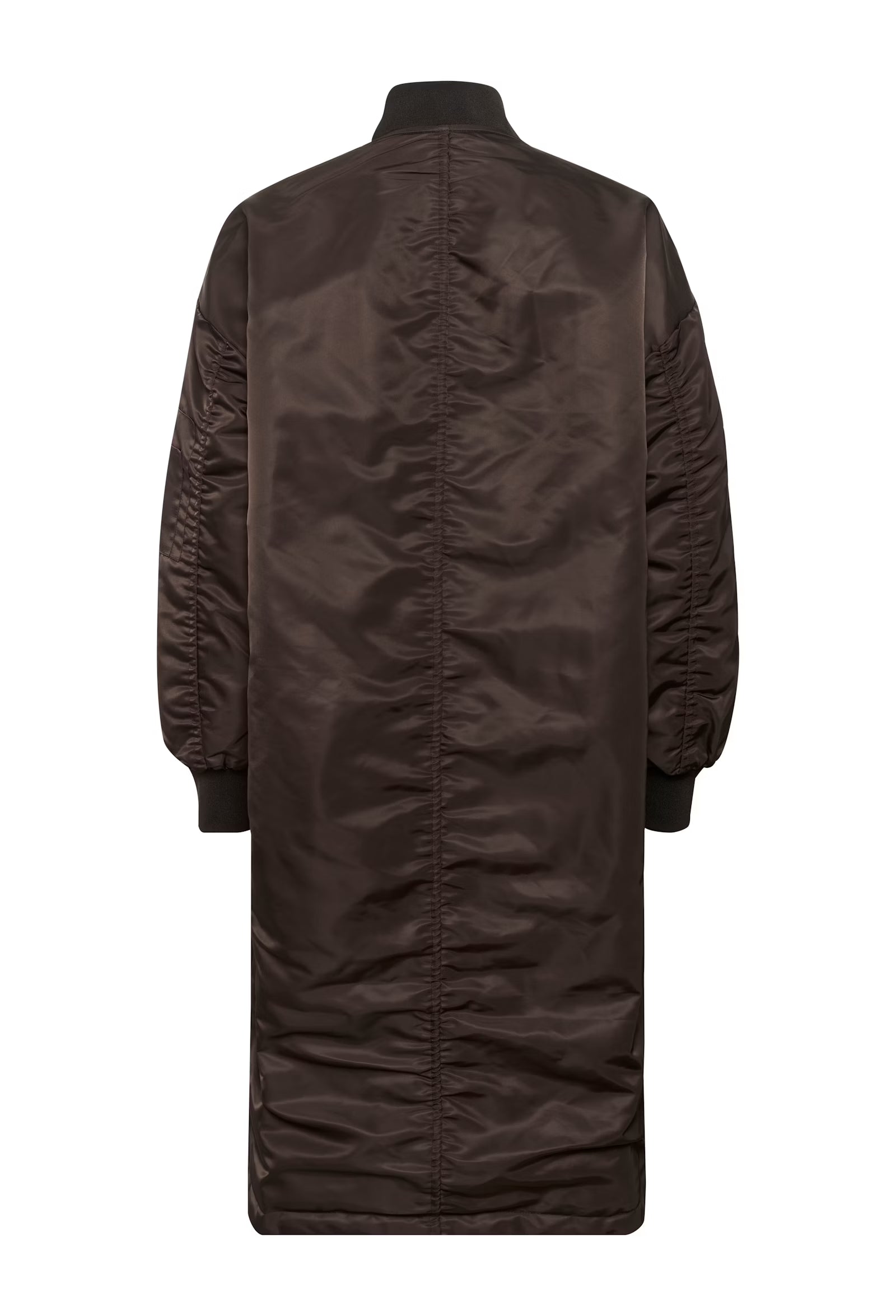 Dieser Wende-Bombermantel bietet eine lockere Passform, geraden Schnitt, Rippenbündchen und mittellange Ausführung. Bequem und vielseitig im Alltag tragbar. Du kannst ihn in Steppoptik oder in Metallic glatt tragen