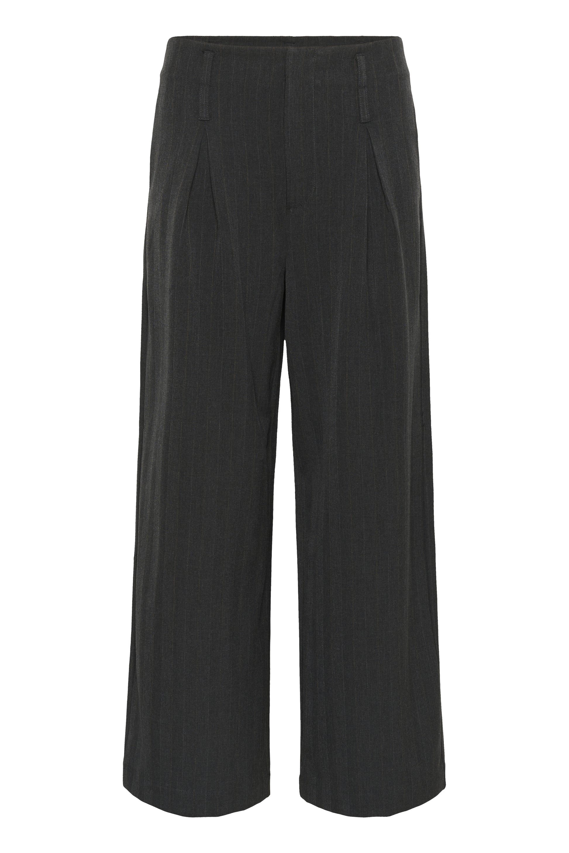 Weite Hose mit hohem Bund von My Essential Wardrobe, prägnante Bundfalten und Gürtelschlaufen. Das lange Bein verleiht ein modernes, lässiges Tailoring-Flair.
